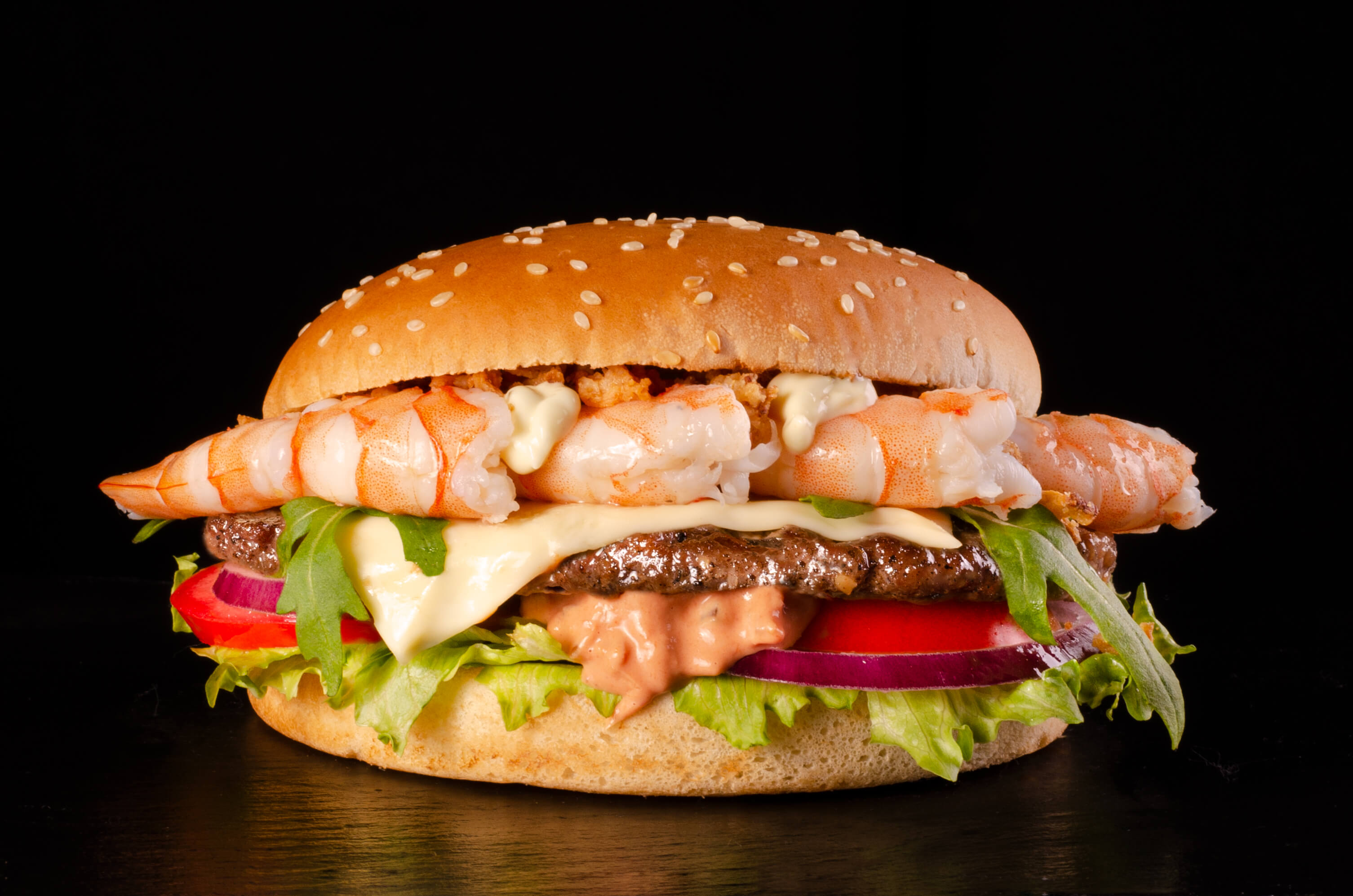 Бургер з яловичиною та тигровими креветками